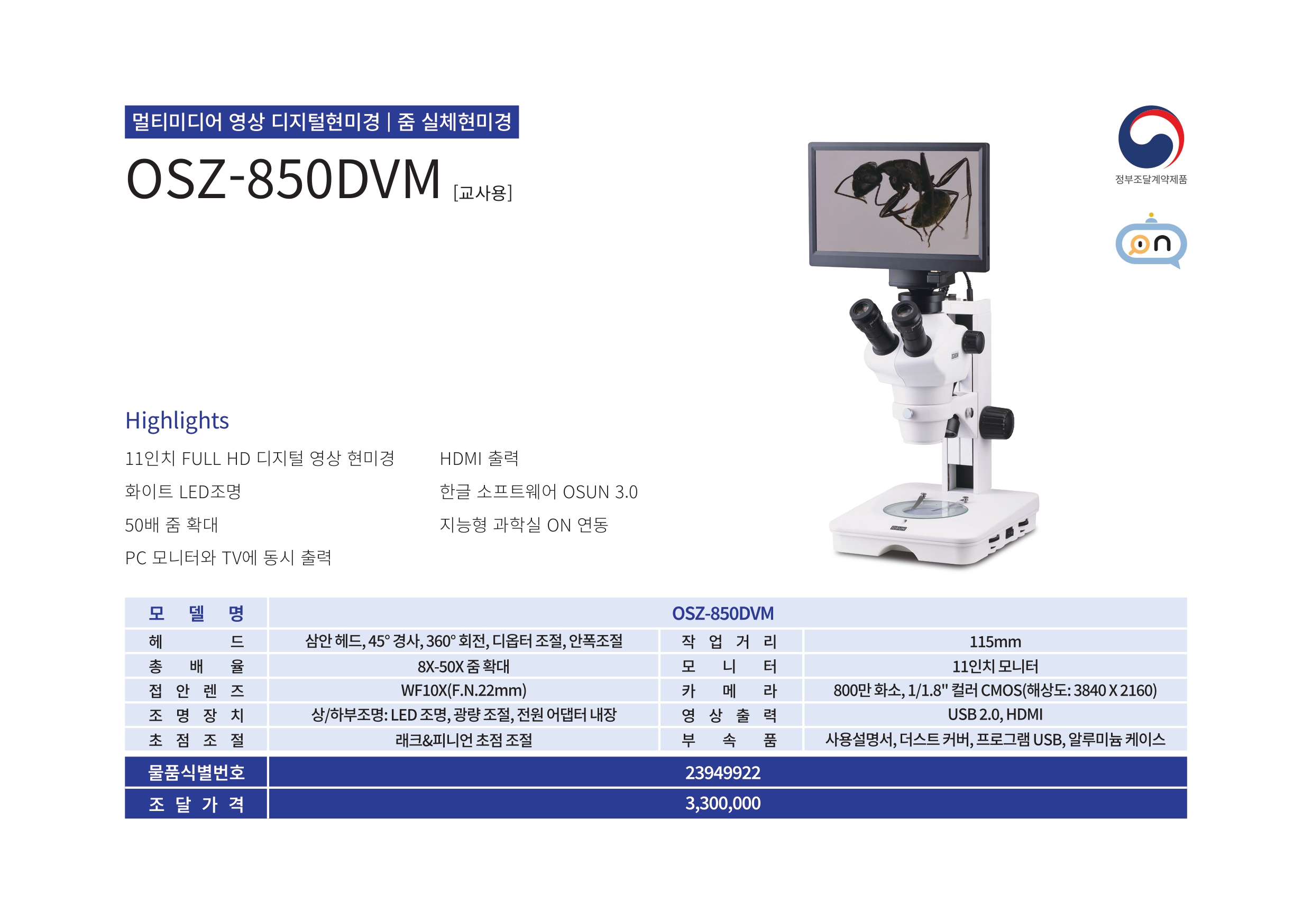 11인치 FULL HD 디지털 영상 현미경