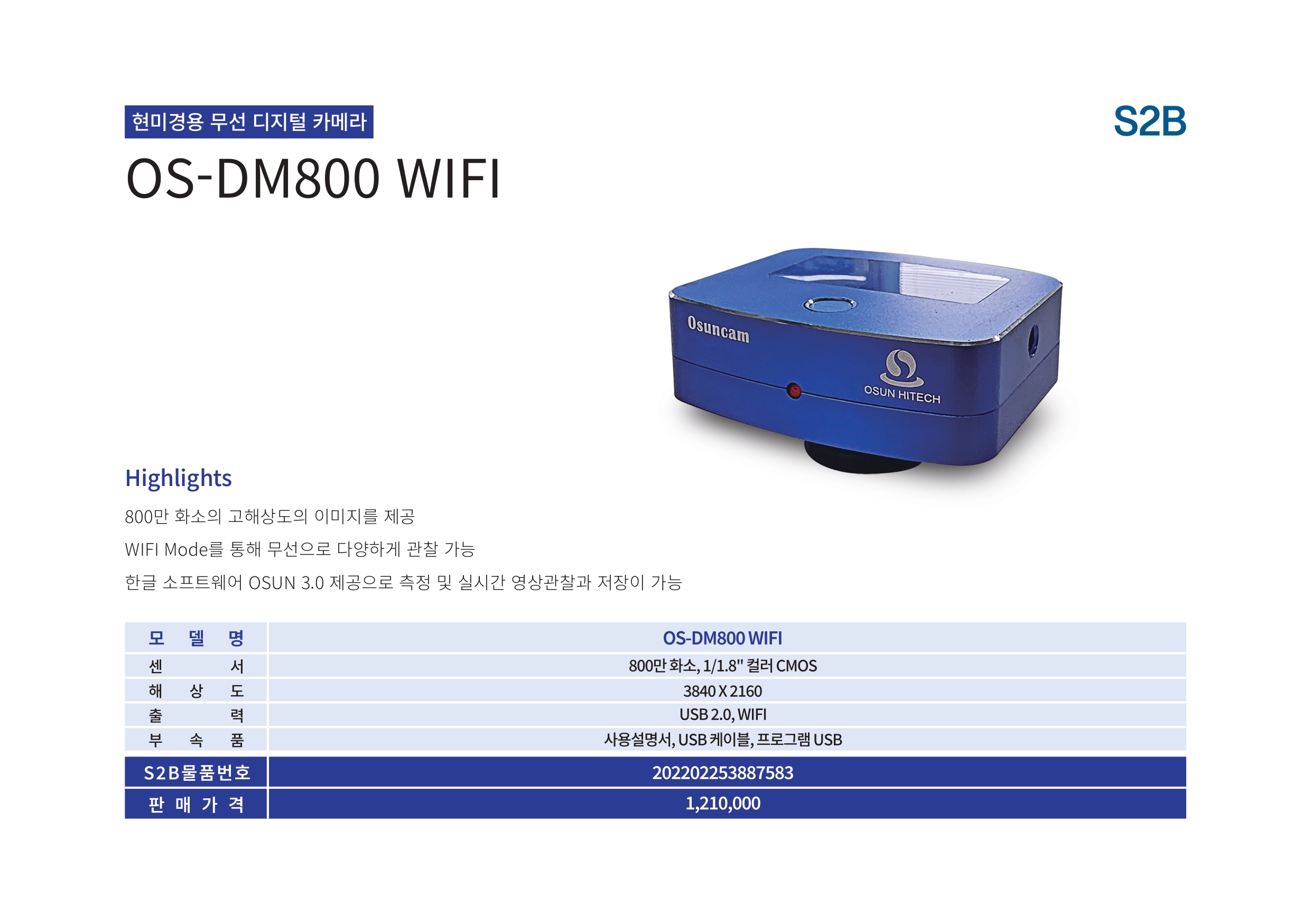 한글 소프트웨어 OSUN 3.0 제공으로 측정 및 실시간 영상관찰과 저장이 가능