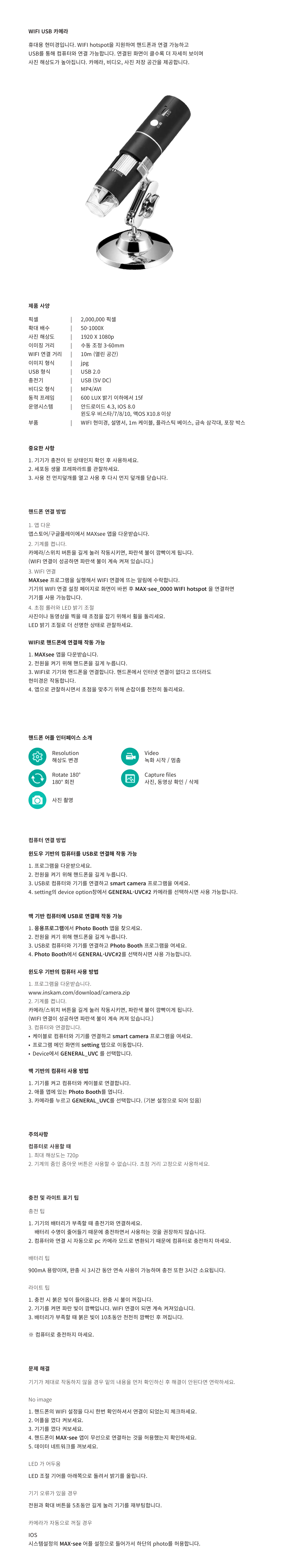 멀티 영상 USB 현미경 WIFI USB 카메라 연결 방법